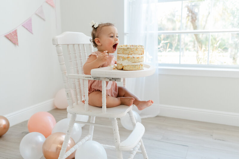 One whole year older! This session is typically used to celebrate with cake- offered in studio or on location. I split up your session into a few segments depending on what you want- so we are able to allocate time to just capture your little one, some with the family, and then the rest for chowing down on cake and getting messy.
